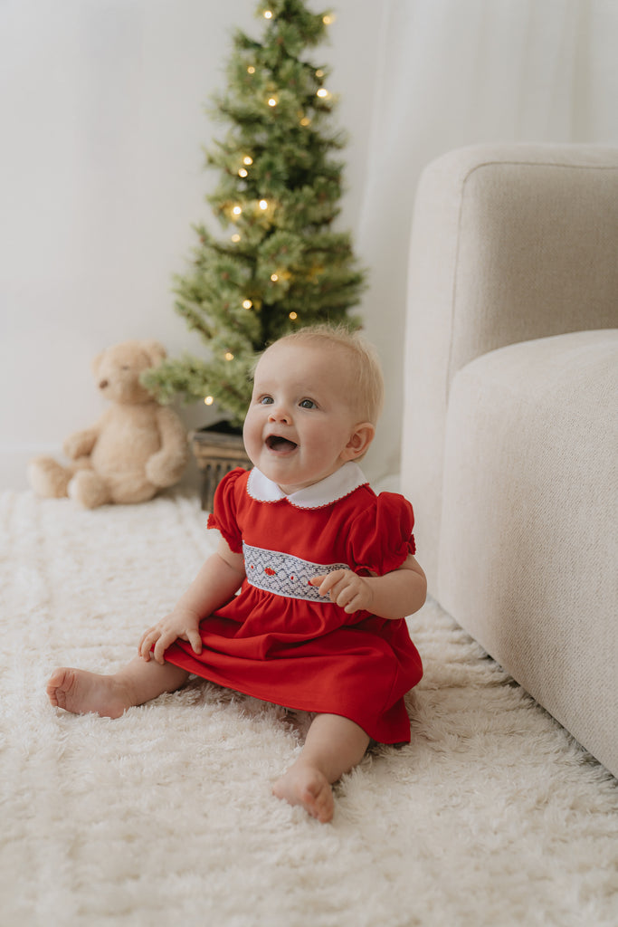 Indulge in luxury for your little princess with our exquisite Rose Smocked Dress. Made with soft pima cotton and hand smocked with intricate details, this dress is perfect for Christmas.