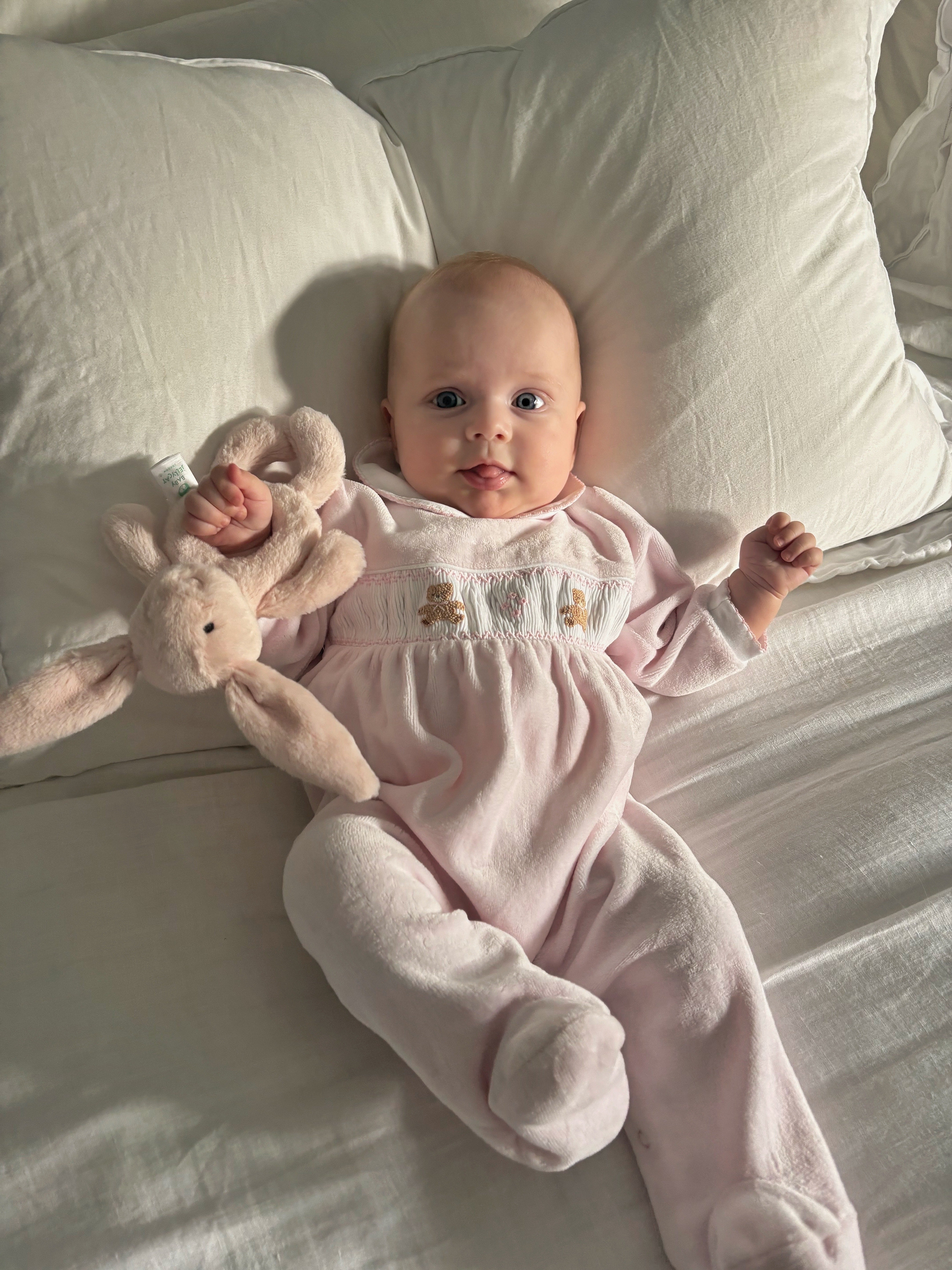 Girls Nursery Bear Velour Smocked Footsie